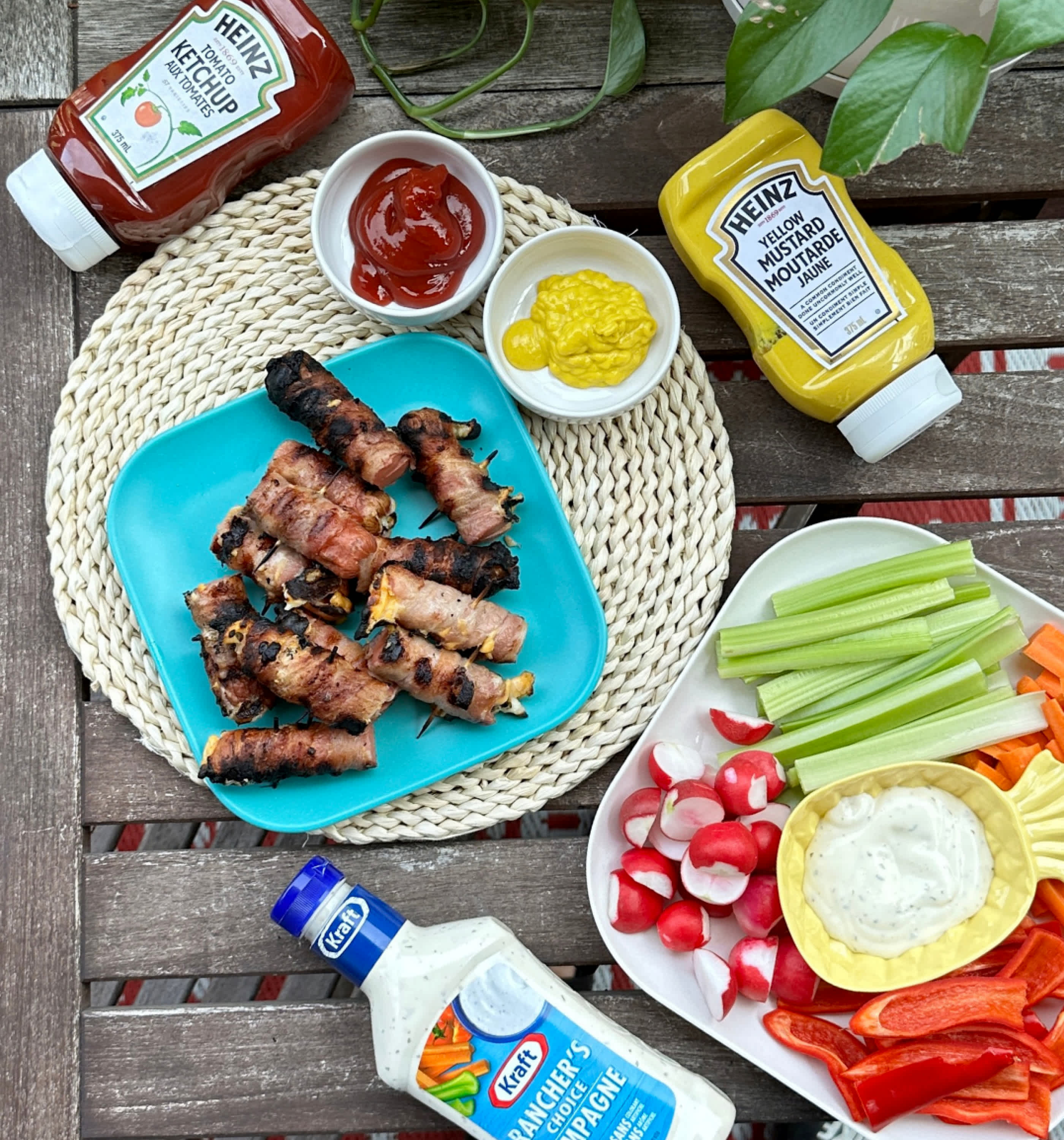 Use some toothpicks to secure the bacon on to the sausage (2 thoothpicks are enough).