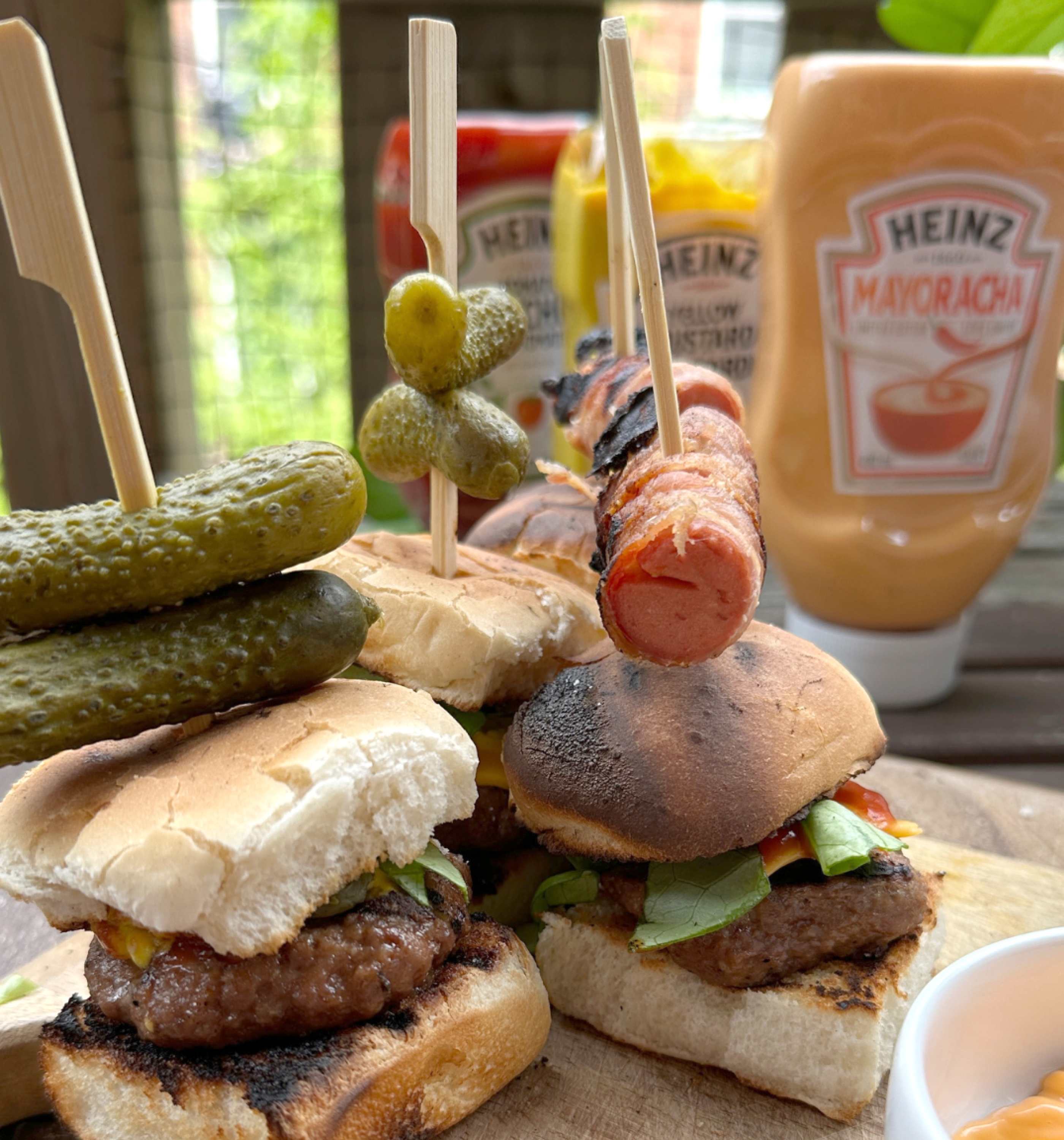 Garnish the mini buns with one patty and add toppings of your choice (I recommend to add Heinz Mayoratcha sauce).