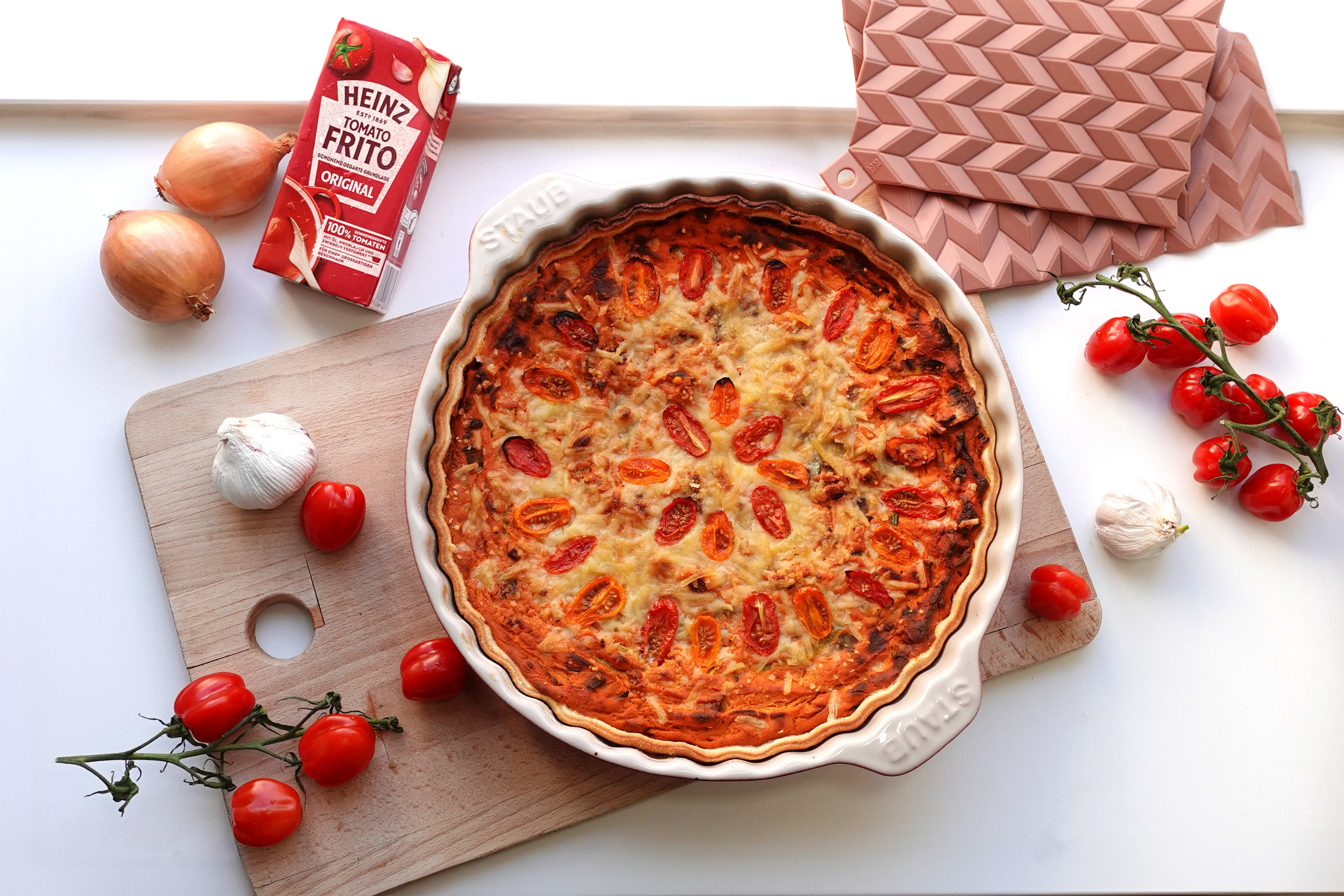 Naturtofu und 200g Räuchertofu mit dem Heinz Tomato Frito und Skyr zu einer cremigen Füllung pürieren.