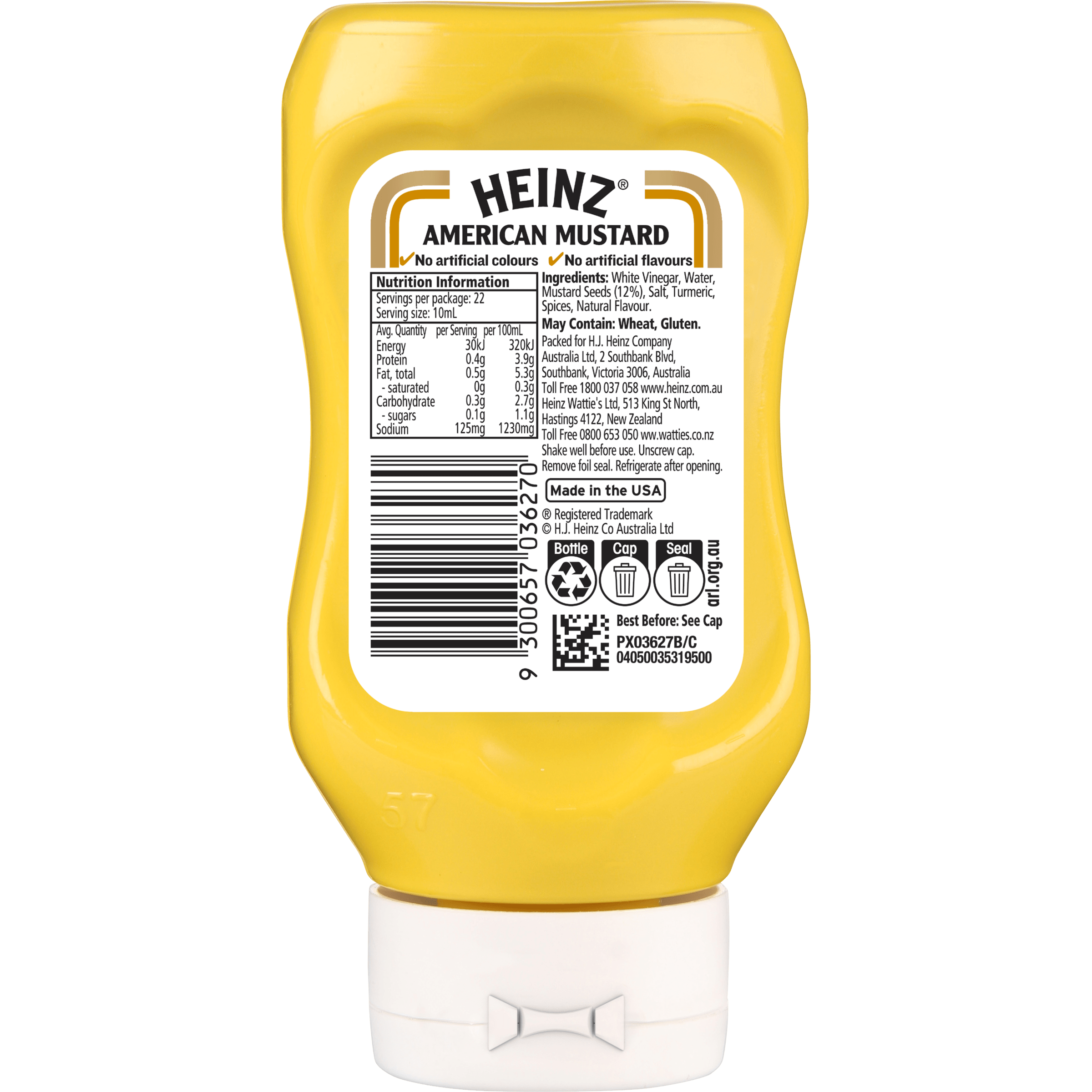No burger night, family barbecue, sandwich or hotdog is complete without Heinz® American Mustard. This New York style mustard has a mild tang and is...