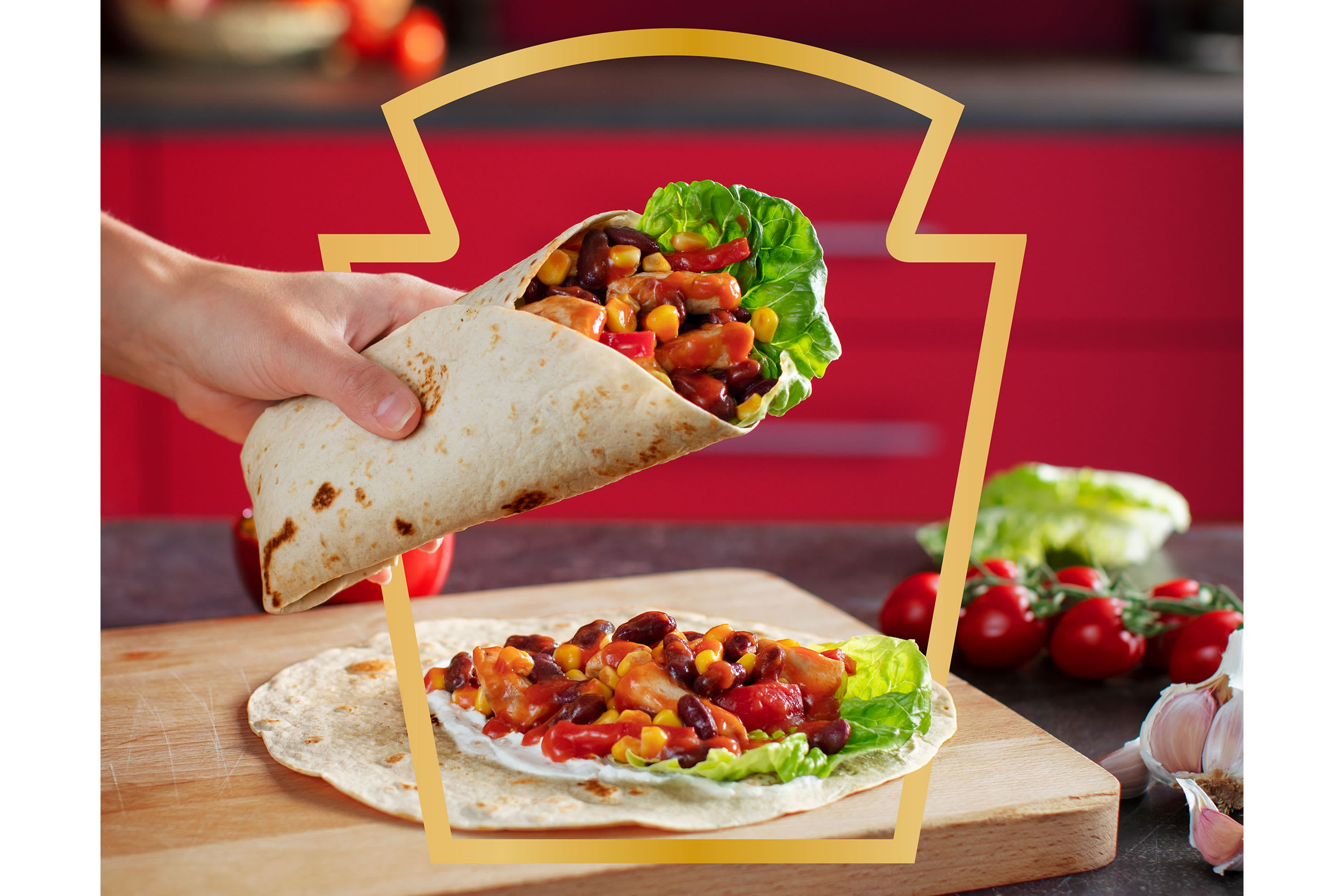 Ajoutez le Heinz Tomato Frito et le poulet en lamelles et faites chauffer le tout pendant quelques minutes. Ensuite, couvrez et gardez la sauce au chaud jusqu’à ce que les wraps soient prêts.
