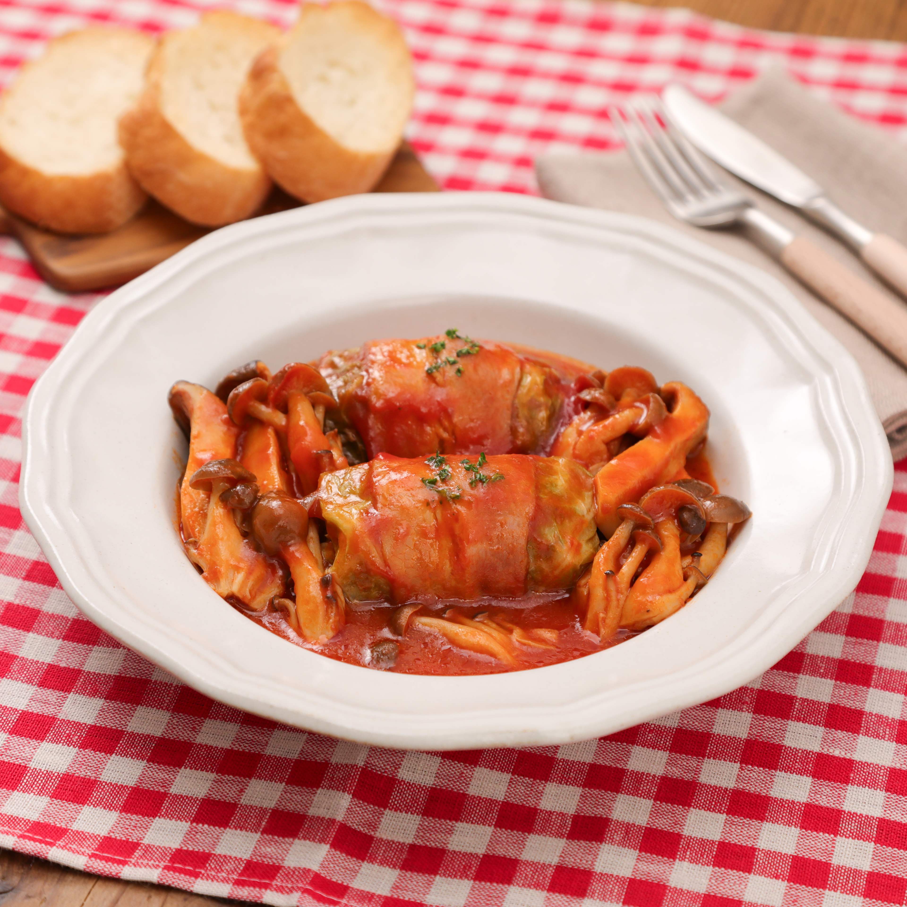 ハインツのトマトケチャップを使ったロールキャベツのレシピです。ベーコンときのこをプラスしてうまみ倍増!