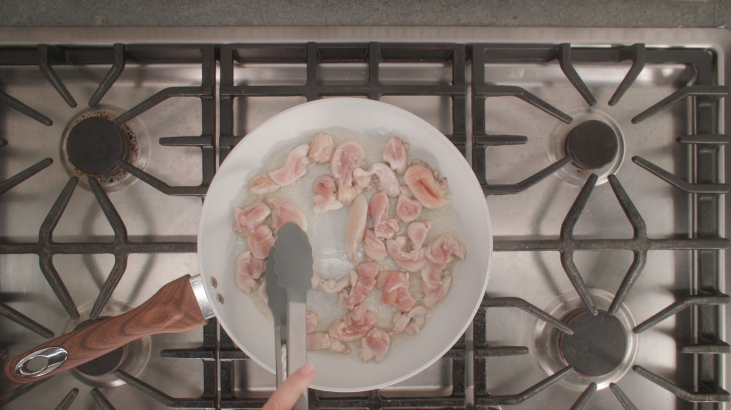 Heat oil in large skillet over medium heat. Add chicken and garlic; cook and stir 8 to 10 min. or until chicken is evenly browned.