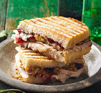 Mix gravy and mayo; spread onto bread slices. Fill with turkey, stuffing and cranberry sauce.