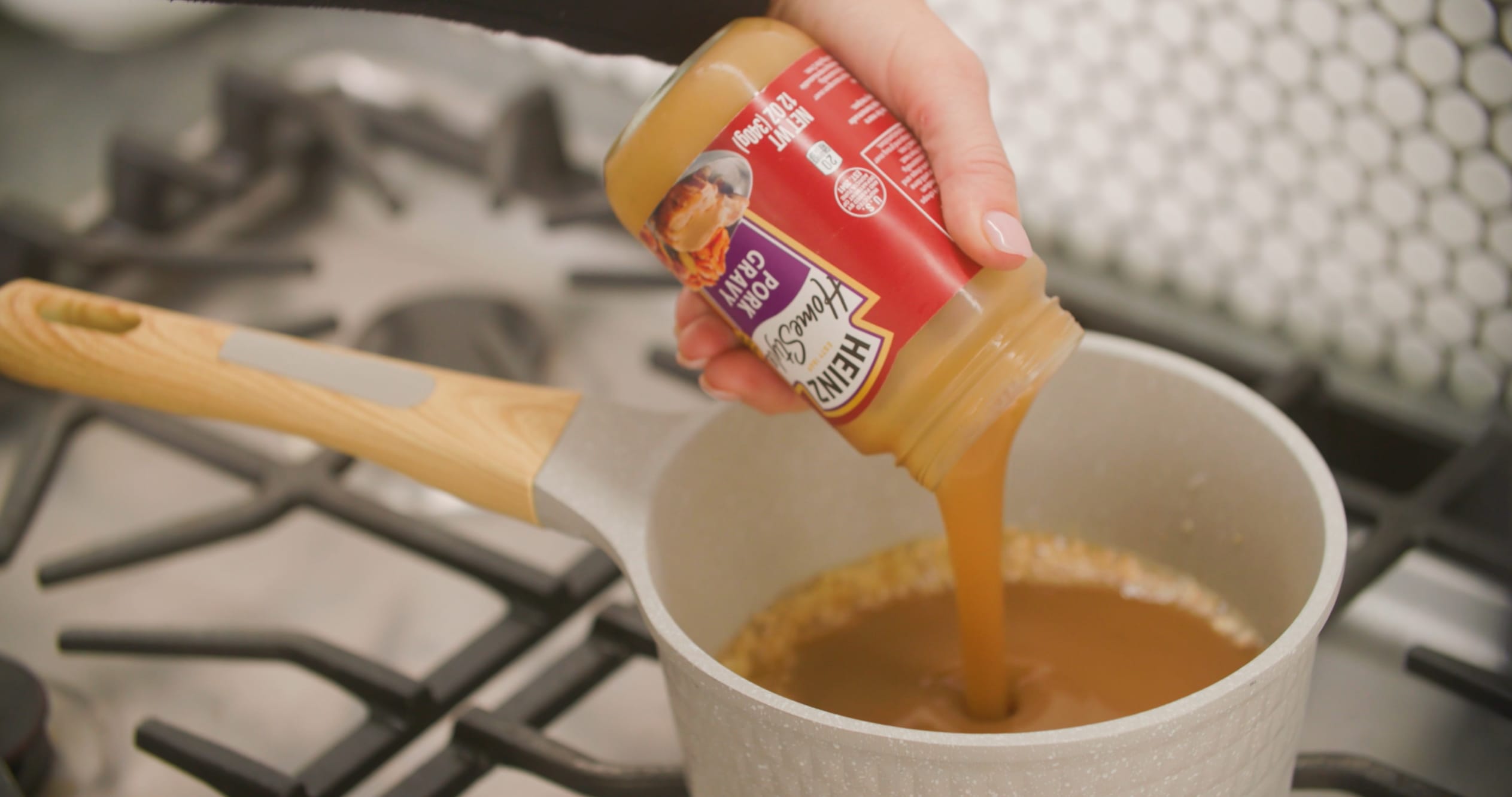 Stir in the gravy, water, Sriracha sauce and soy sauce. Bring to a boil, stirring frequently.