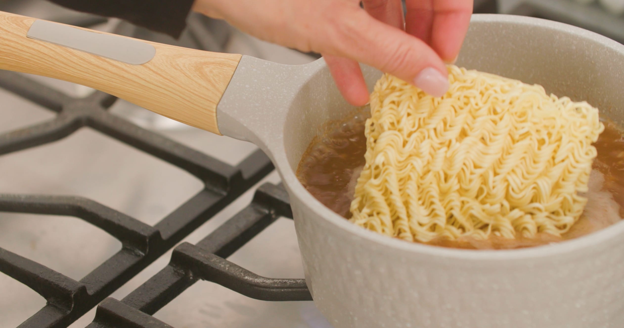 Add noodles; mix well. Discard both Seasoning Packets.