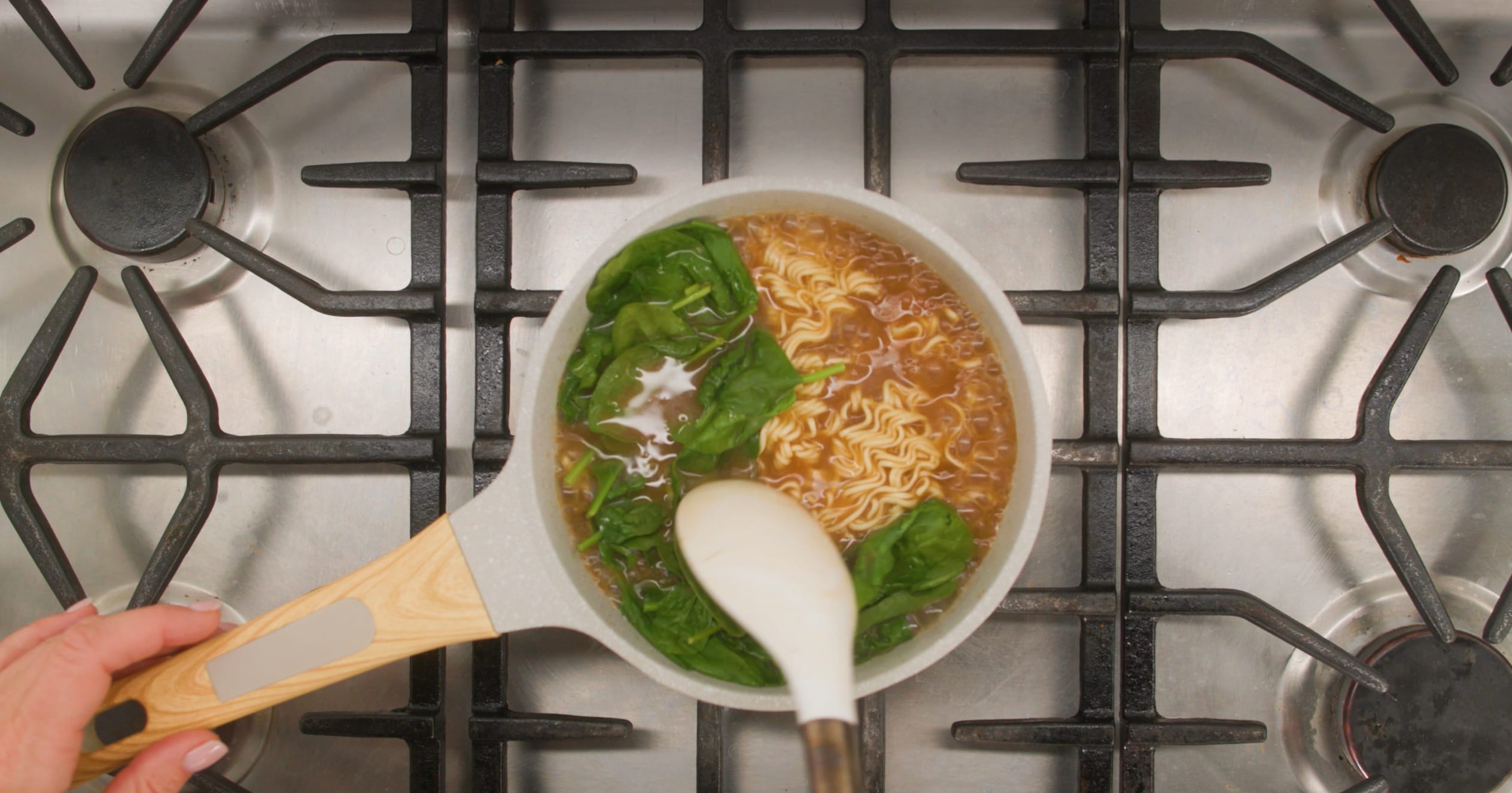 Add spinach; cook and stir 4 min. or just until noodles are tender, stirring frequently.