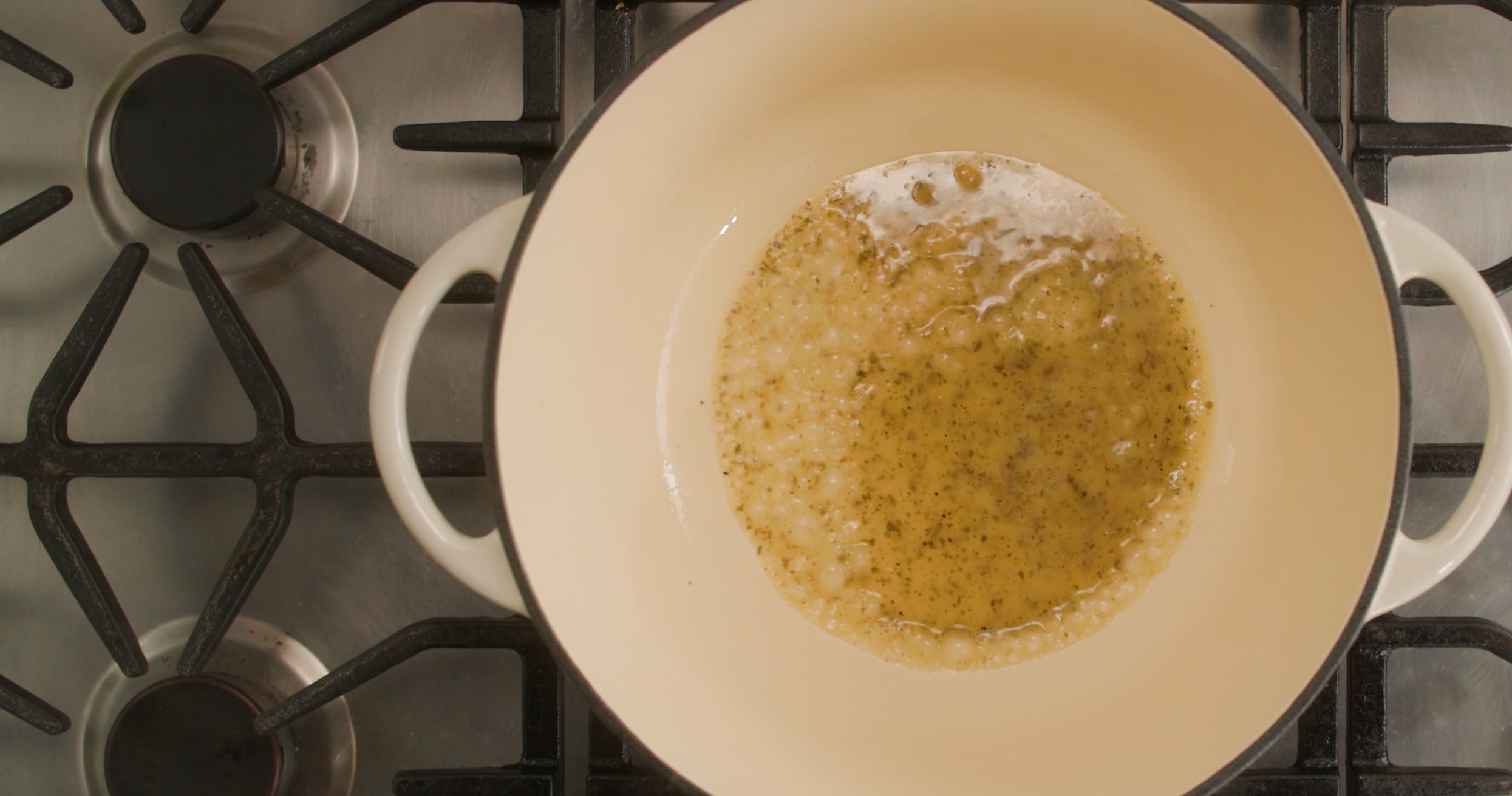 Heat dressing in Dutch oven sprayed with cooking spray on medium heat.