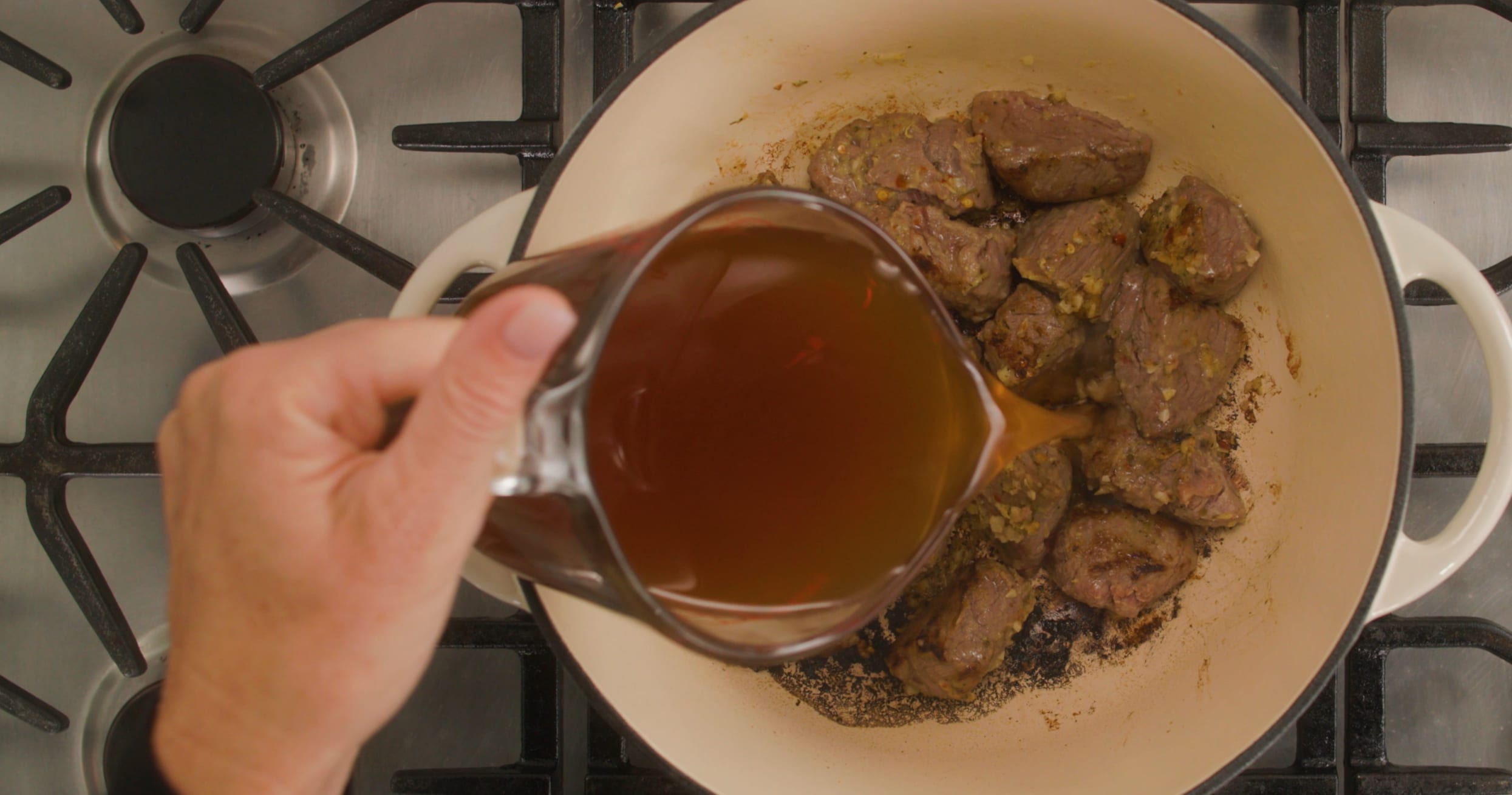 Add beef broth; cook 2 min., stirring constantly to scrape browned bits from bottom of pan.