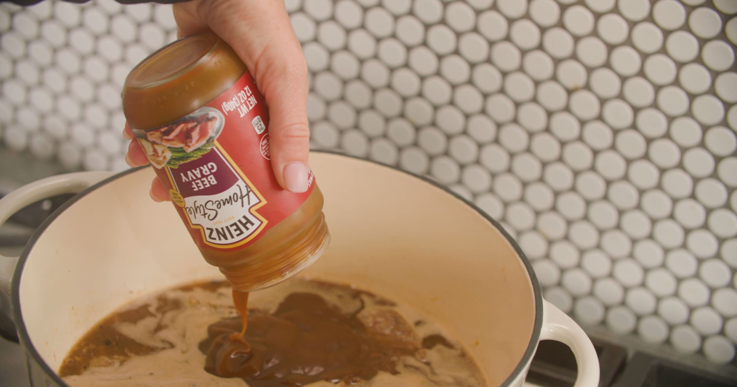 Stir in gravy; cover. Simmer on medium-low heat 2 hours or until meat is tender, stirring occasionally.