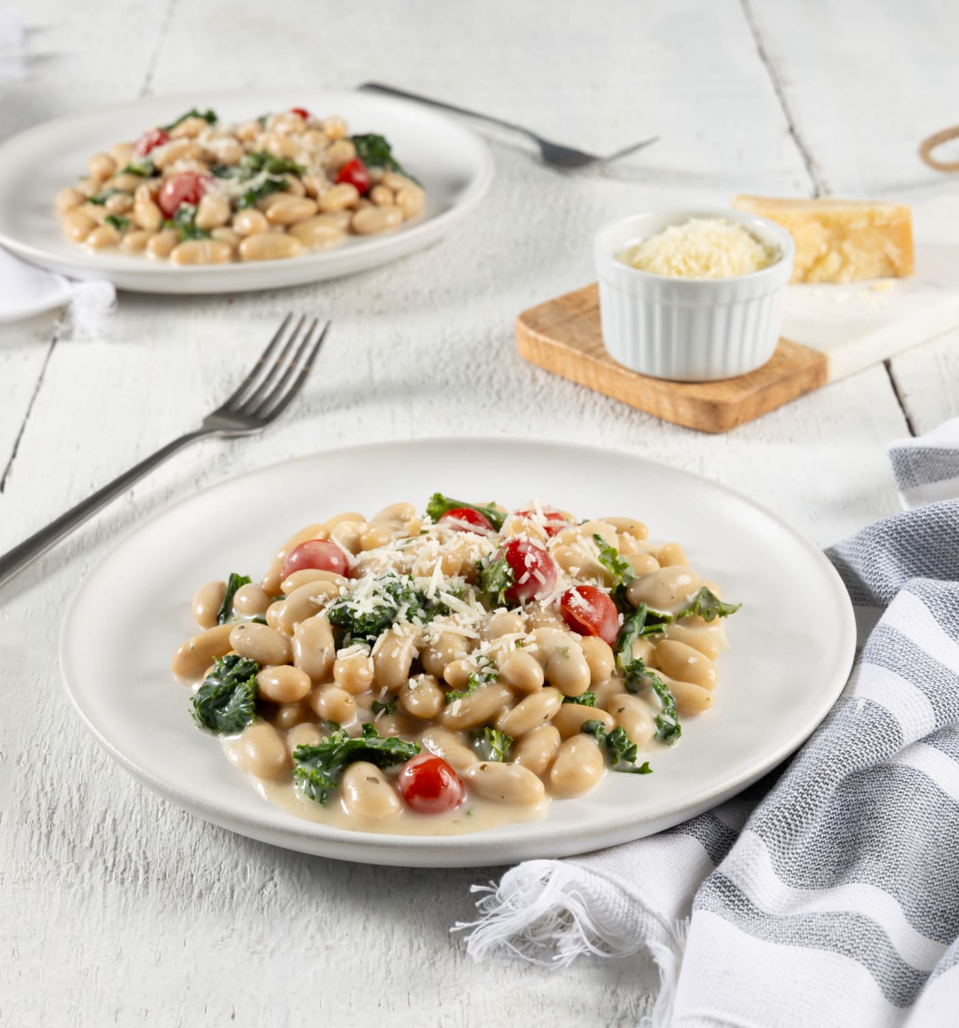 Cook beans, gravy and whipping cream in large skillet over medium heat for 5 minutes or until heated through, stirring frequently.
